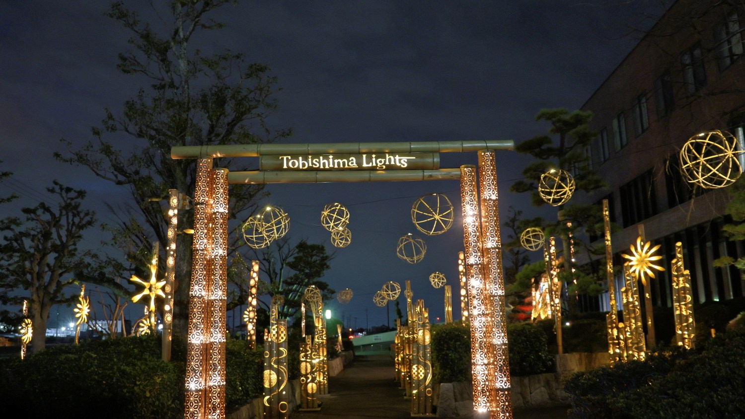 ![]() 2 イルミネーション竹あかり「Tobishima Lights」 東入口から撮影 |
