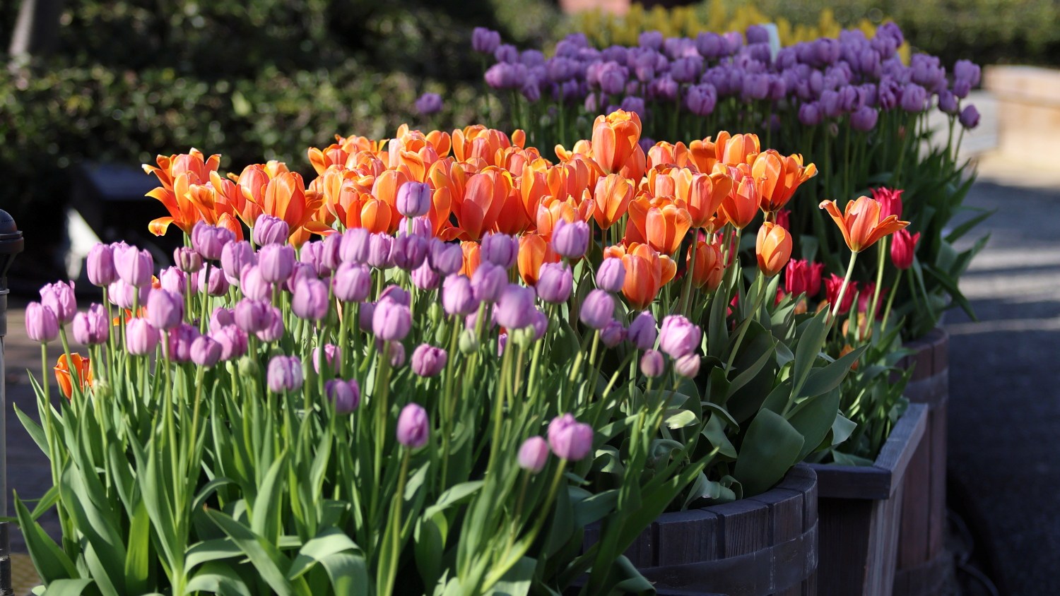 ![]() 2 ながしまビール園前のウインターチューリップ |