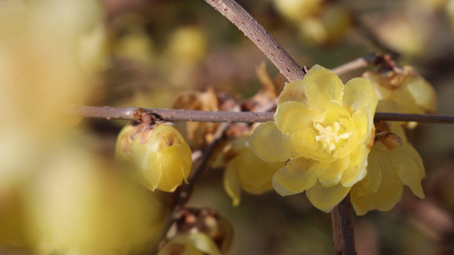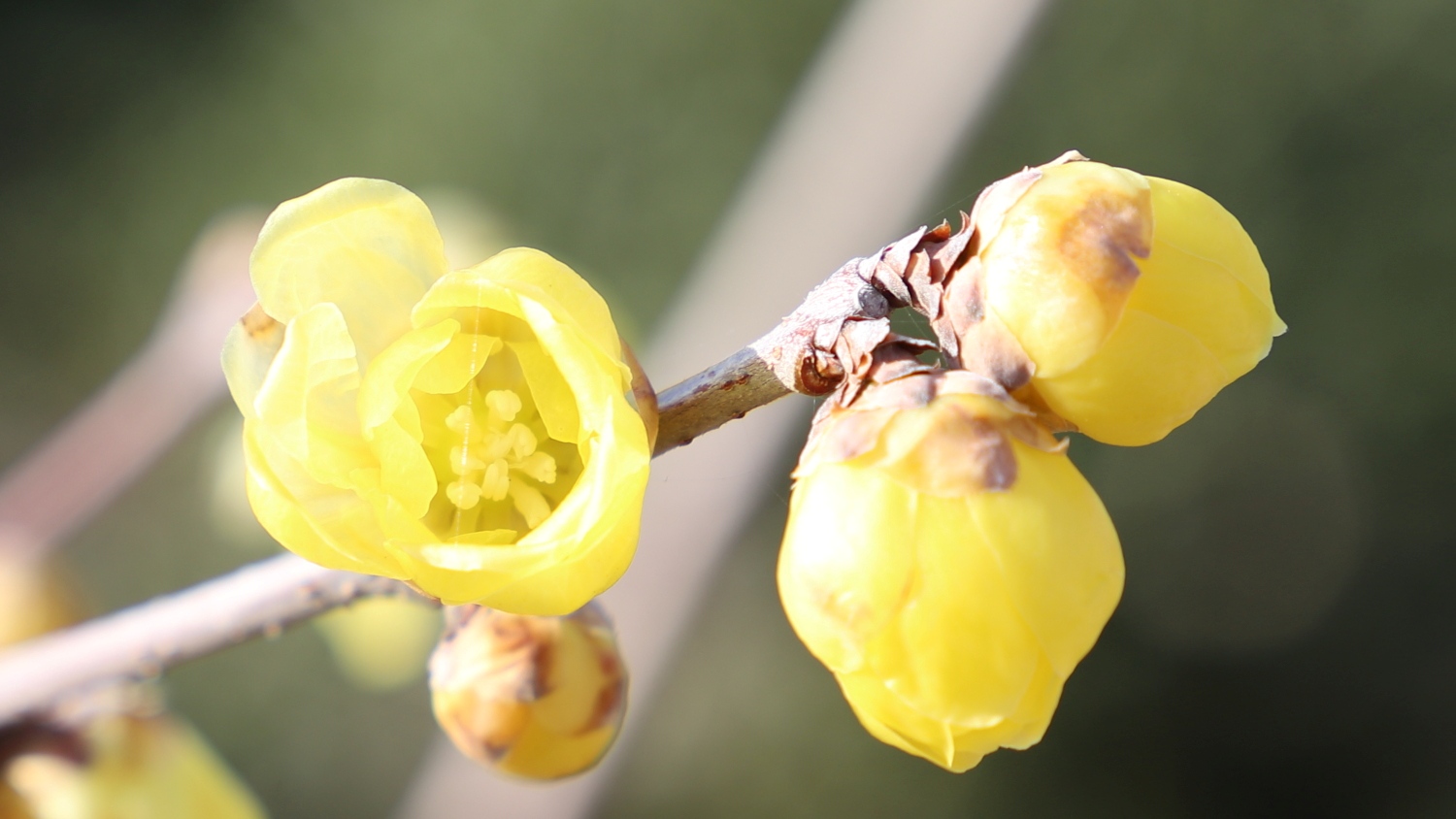 蝋梅の撮影時期は少し遅れましたが何とか写真になりました。自宅の蝋梅よりお隣の方が奇麗でした。