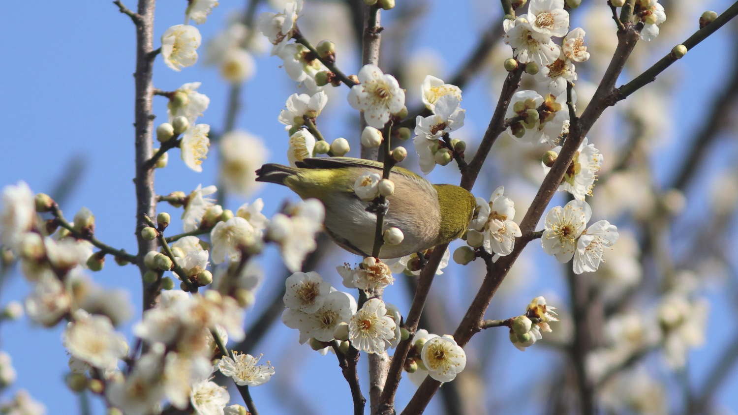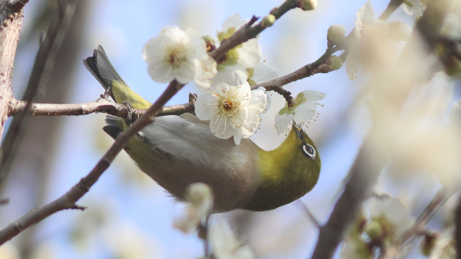 飽きずに又、なばなの里に来ました。今日も運良く、カワセミ君に会うことが出来ました。( ^)o(^ )又、白梅にメジロ君が遊んでました!