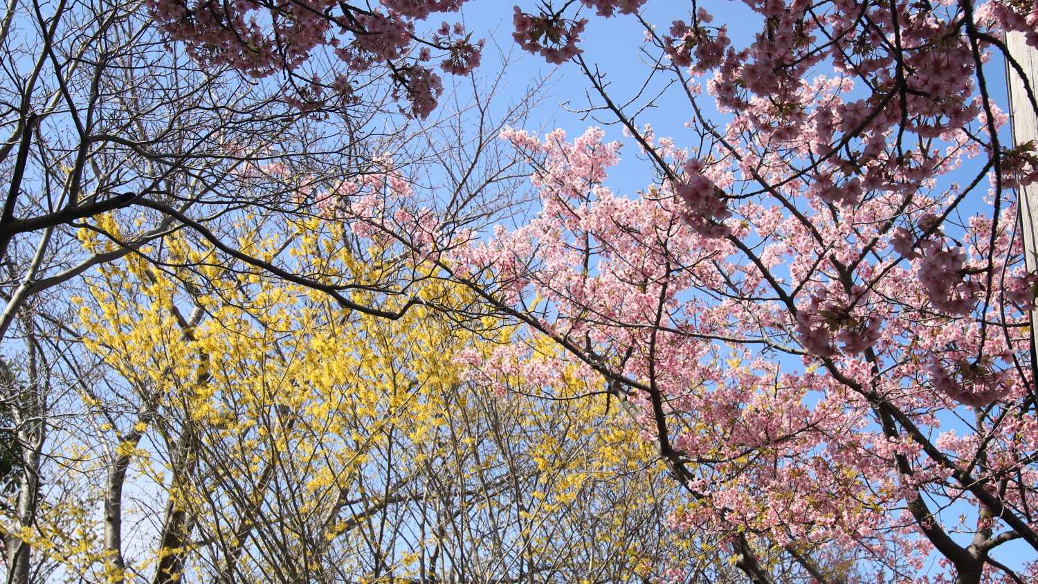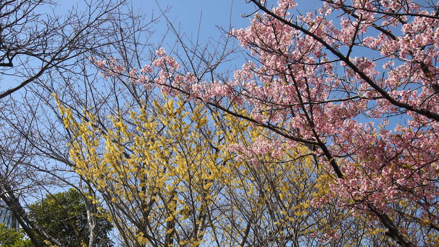 2 ベゴニアガーデン前の河津桜とマンサク