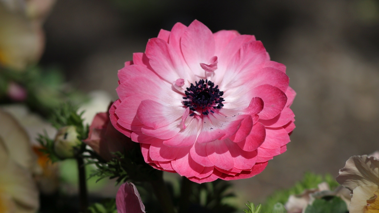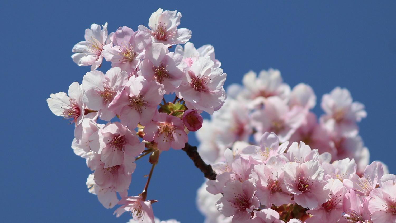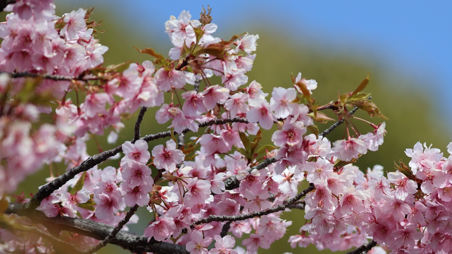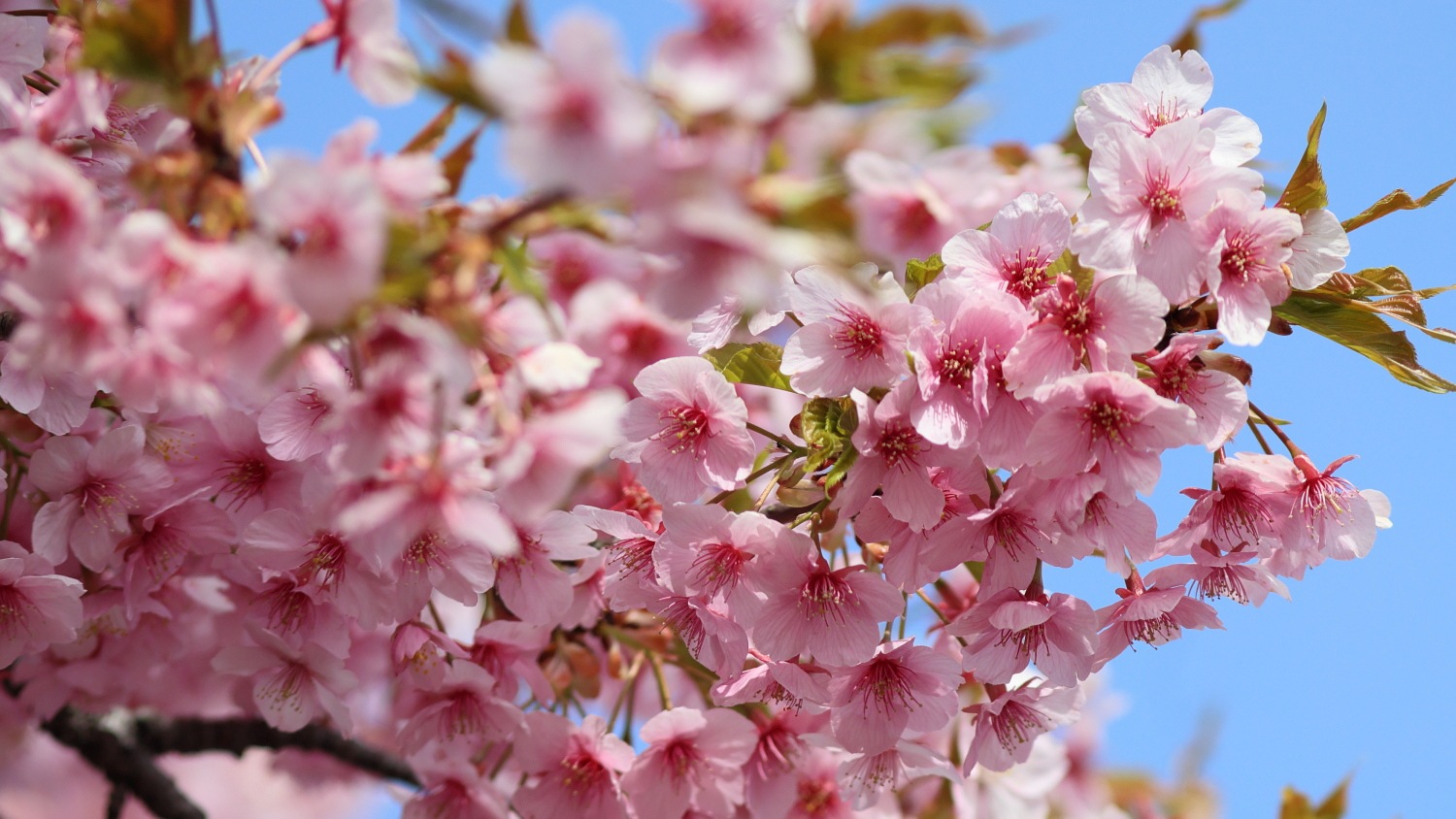 なばなの里の大河周りの河津桜美しさは継続中!ベゴニアガーデン前の河津桜とマンサクが咲き競っています。その他、アネモネ、パンジー、シロタエギクも奇麗でした(^^♪